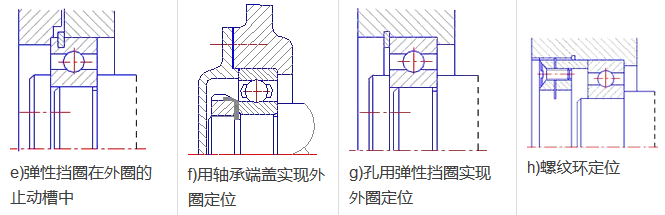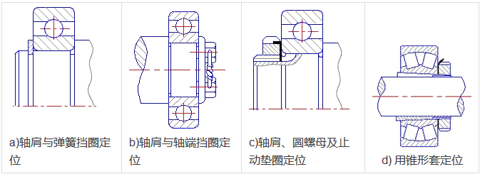 滾動(dòng)軸承內(nèi)外圈的定位與固定的方法很多,下列為幾種常用的方法。